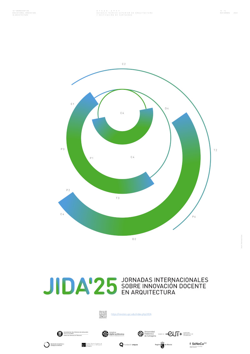 Las decimoterceras Jornadas Internacionales sobre Innovación Docente en Arquitectura (JIDA’25), impulsadas desde la UPC-ETSAB y con una convocatoria de alcance internacional, se celebrarán los días 13 y 14 de noviembre de 2025 en la Escuela Técnica Superior de Arquitectura y Edificación de Cartagena (ETSAE-UPCT). En esta edición, las jornadas contarán con la colaboración del Departamento de Arquitectura y Tecnología de la Edificación de la UPCT, el Institut de Ciències de l’Educació (ICE-UPC), Iniciativa Digital Politècnica (IDP) y la Fundación Arquia. Asimismo, el Congreso (22893/OC/25) está financiado por la Consejería de Medio Ambiente, Universidades, Investigación y Mar Menor, a través de la Fundación Séneca-Agencia de Ciencia y Tecnología de la Región de Murcia (http://www.fseneca.es) con cargo al Programa Regional de Movilidad, Colaboración internacional e Intercambio de Conocimiento “Jiménez de la Espada” en el marco de la convocatoria de ayudas a la organización de congresos y reuniones científico-técnicas (plan de actuación 2025).
